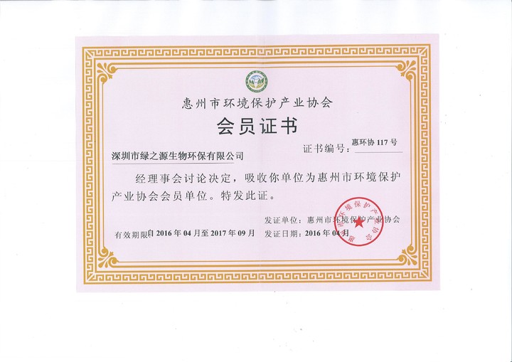 惠州市環(huán)境保護(hù)產(chǎn)業(yè)協(xié)會會員