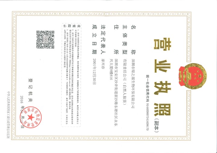 深圳市綠之源生物環(huán)保有限公司營業(yè)執(zhí)照